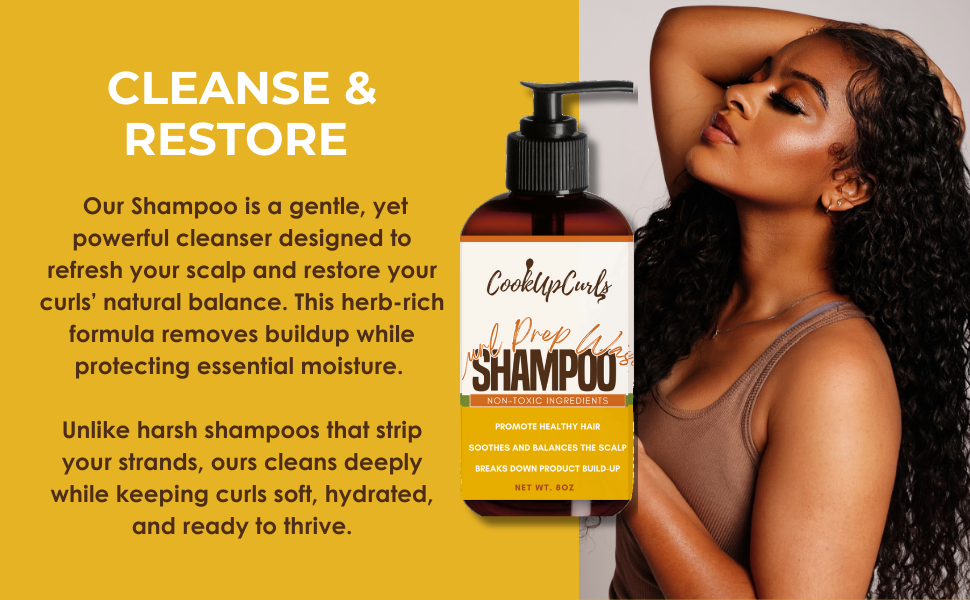 First, cleanse the canvas with our Curl Prep Wash, a gentle, sulfate-free shampoo that sweeps away buildup while locking in essential hydration. It’s the clean base every curl recipe needs...fresh, balanced, and full of bounce.