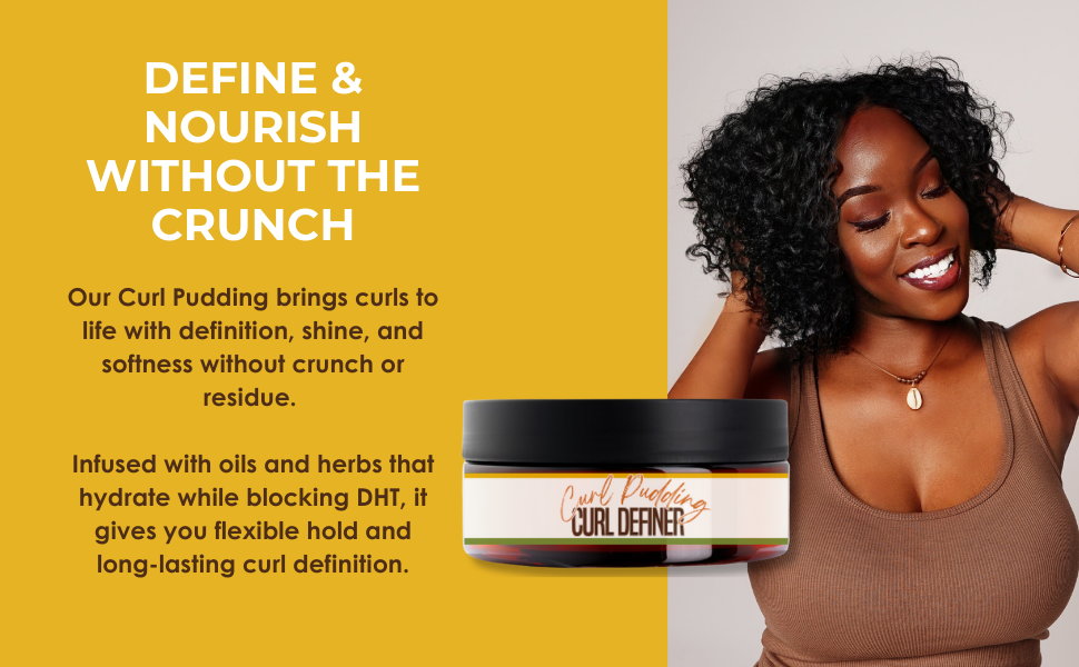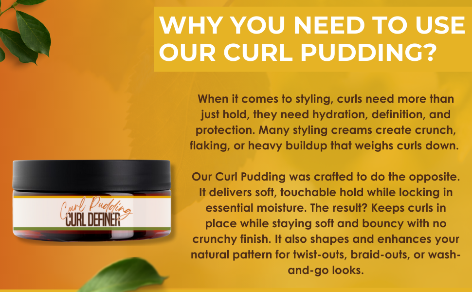 This thick, whipped styling pudding delivers definition with a soft hold. Perfect for twist-outs, braid-outs, or wash and gos. Scoop, smooth, and set your curls for styles that serve all day.